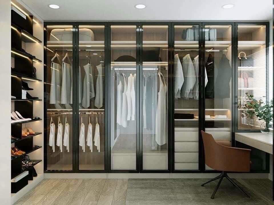 Tủ quần áo gỗ cao cấp MDF phủ Melamine cánh Kính - Khung Nhôm TCKCC01