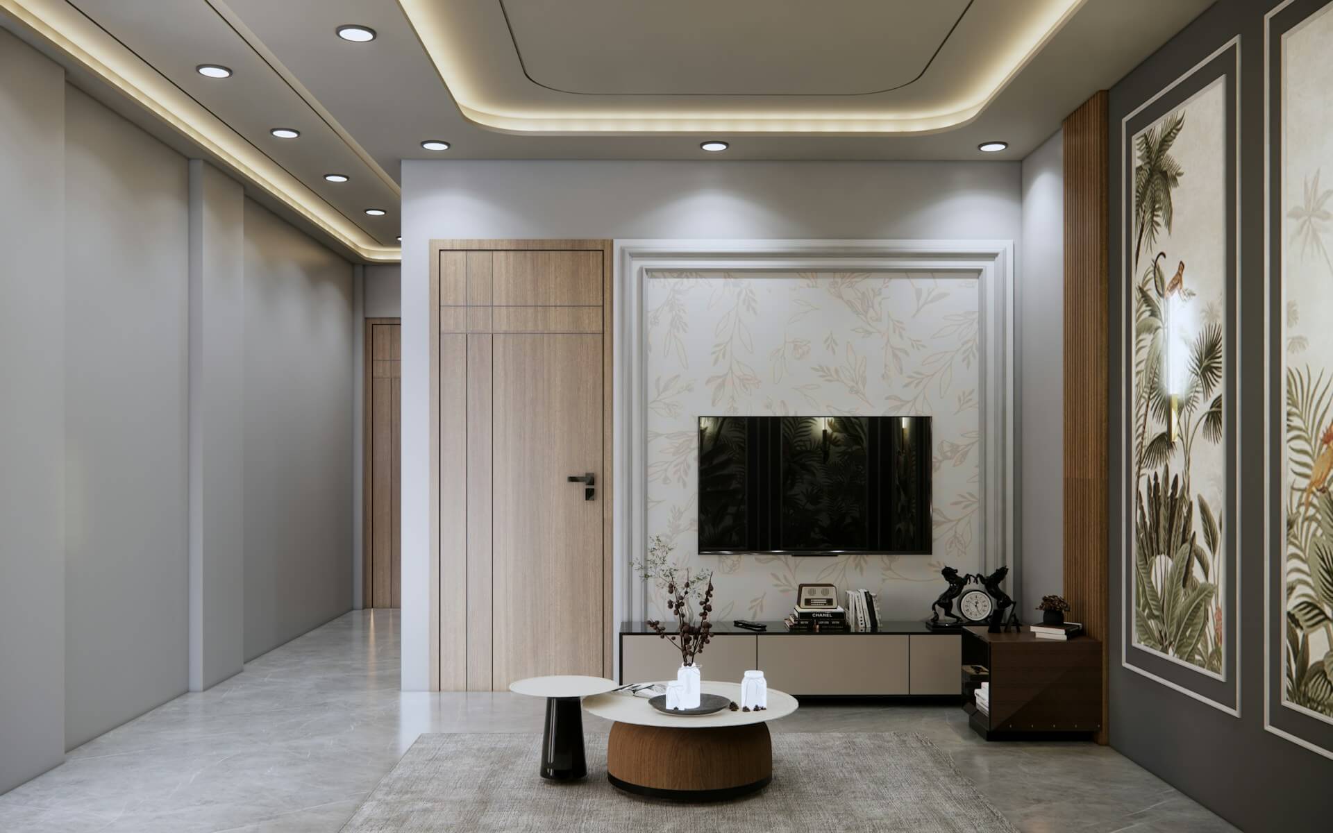 - Tối ưu không gian: Sử dụng tone màu trung tính kết hợp kính cường lực để tạo chiều sâu và không gian mở giữa các phòng.