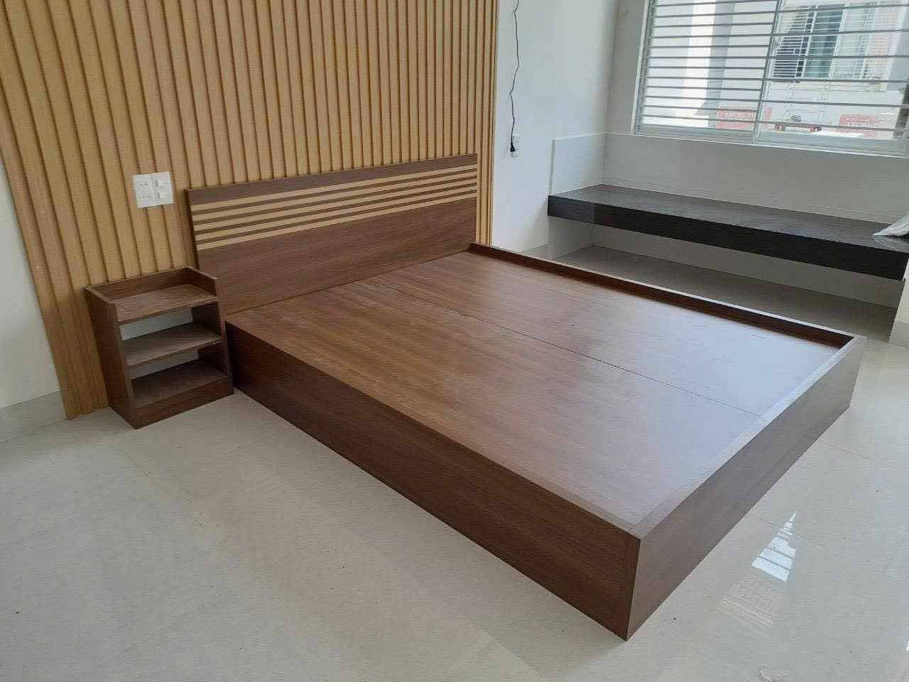 Giường gỗ công nghiệp: Thiết kế hiện đại, màu sắc đa dạng, giá thành hợp lý – phù hợp với không gian trẻ trung.