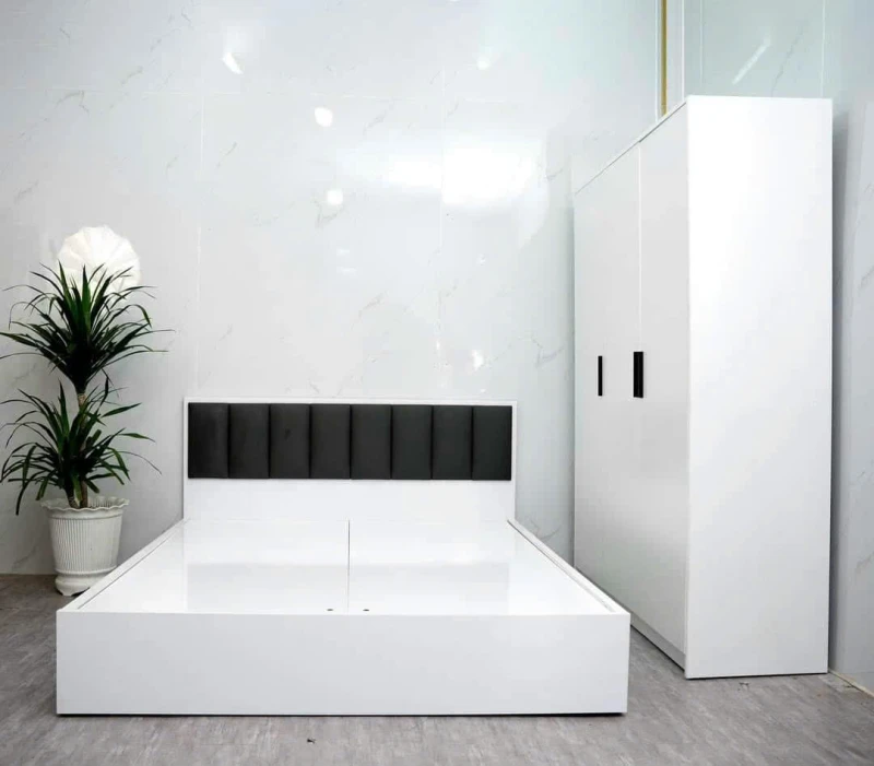 Giường bọc nệm (bọc vải/bọc da): Êm ái, tinh tế, tăng cảm giác ấm cúng và cao cấp cho phòng ngủ.