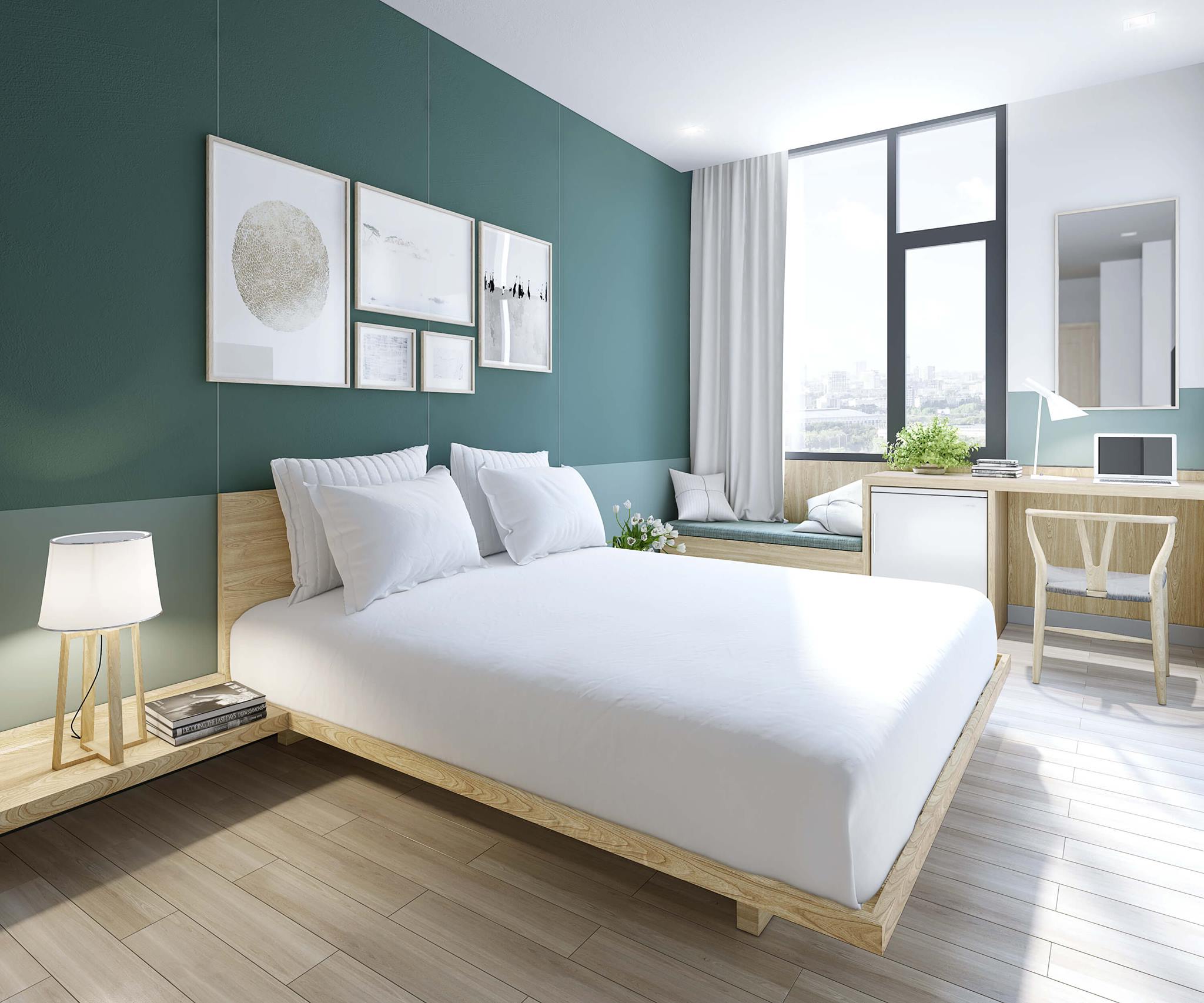 Giường gỗ công nghiệp: Thiết kế hiện đại, màu sắc đa dạng, giá thành hợp lý – phù hợp với không gian trẻ trung.