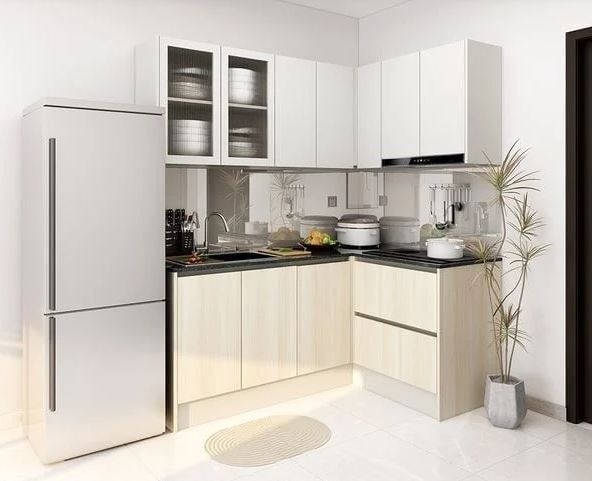 Tủ bếp chữ L giúp tận dụng tối đa diện tích góc, phù hợp cho căn hộ nhỏ, thiết kế linh hoạt và tiện dụng.