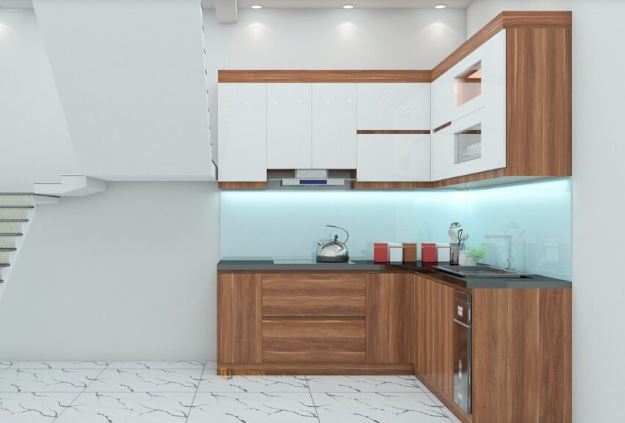 Tủ bếp chữ L giúp tận dụng tối đa diện tích góc, phù hợp cho căn hộ nhỏ, thiết kế linh hoạt và tiện dụng.