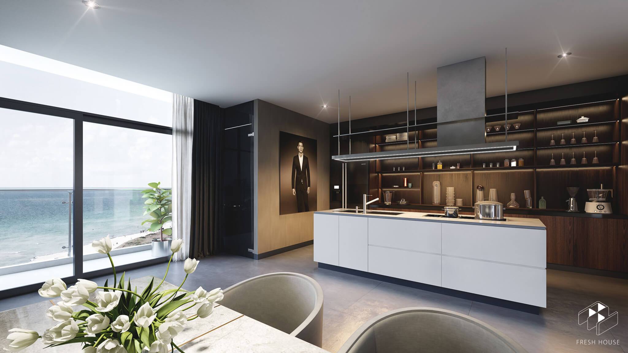 Tủ bếp thẳng (chữ I): Thiết kế đơn giản, hiện đại, tối ưu cho căn hộ có diện tích hạn chế.