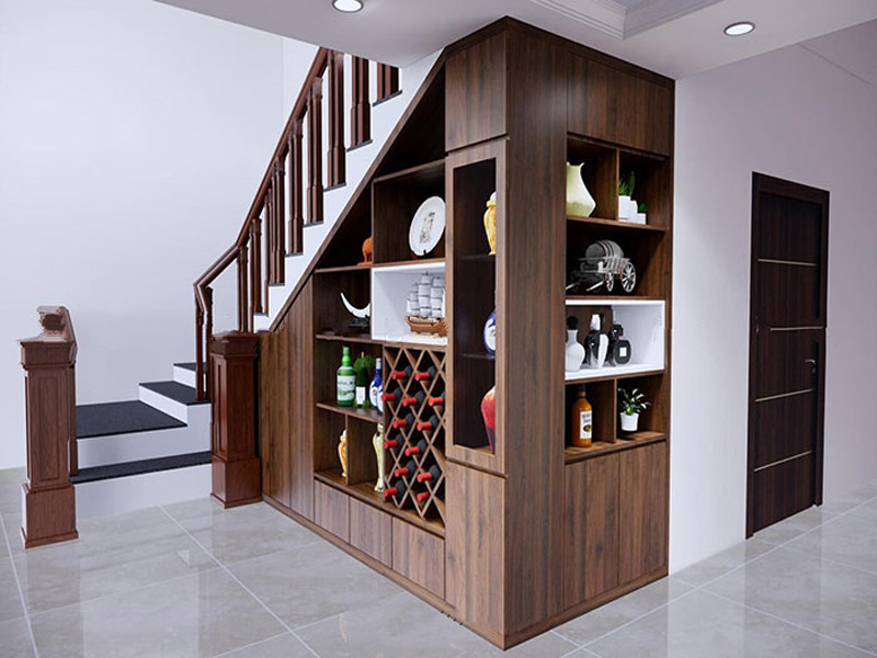 Đa dạng công năng: Có thể thiết kế làm tủ giày, kệ sách, tủ rượu, tủ đựng đồ, thậm chí làm góc làm việc hoặc trang trí.