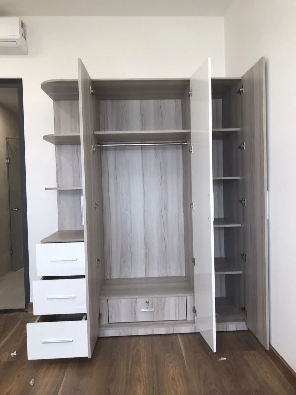 Tủ quần áo thiết kế hiện đại, chia ngăn thông minh, chất liệu bền đẹp. Có sẵn nhiều mẫu tủ gỗ tự nhiên, công nghiệp, cánh mở – cánh lùa – tủ âm tường theo yêu cầu.