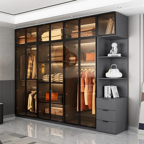 Tủ quần áo gỗ cao cấp MDF phủ Melamine cánh Kính - Khung Nhôm TCKCC01