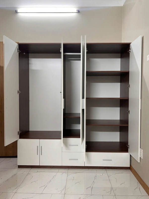 Tủ quần áo cao cấp với lớp phủ Melamine bền bỉ, chống ẩm mốc hiệu quả.